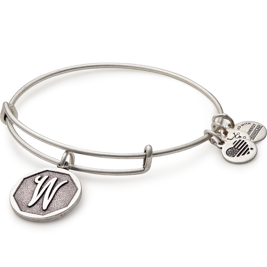 Personalize your style with the Alex and Ani Initial W Charm Bangle. Crafted with care, this adjustable bangle features a delicate charm inscribed with the letter "W," offering a meaningful touch to any outfit.