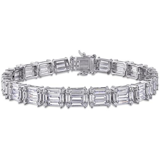 This shimmering multi-cut cubic zirconia tennis bracelet is crafted in lustrous sterling silver and features 110 baguette-cut and 88 round-cut cubic zirconia stones in a unique link tennis bracelet design, perfect for all occasions. A sumptuous look at a price you'll love, choose this stunning gemstone bracelet as a standout addition to your jewellery collection or as a special gift for someone you love.
