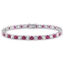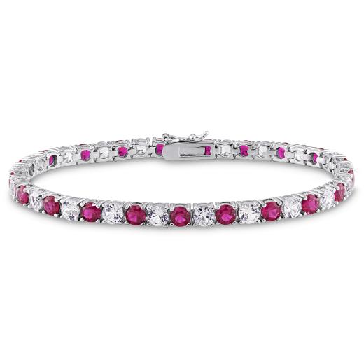 This alluring tennis bracelet features alternating round-cut created ruby and created white sapphires set in sterling silver. This marvelous piece is secured with a box-with-tongue clasp. A perfect choice for that special July birthday in your life.