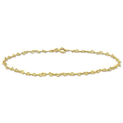 This classic heart link anklet is crafted in lustrous 14k yellow gold and features 2mm heart link chain for a delicate and feminine look. Enhanced with a polished finish, this exquisite anklet measures 9-inches in length and is secured with a spring ring clasp. Spruce up your look with this simple yet elegant anklet.