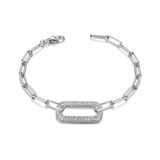 The geometric shape of the links gives the piece a contemporary, fashion-forward look, while the cubic zirconia brings a touch of glamour. Ideal for adding a refined yet trendy touch to any outfit, this bracelet is a versatile and eye-catching accessory.