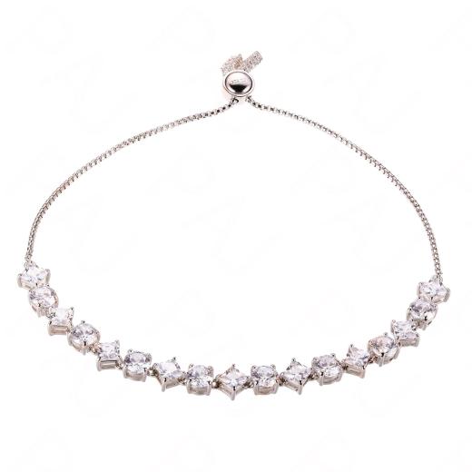This chic adjustable bracelet features a row of sparkling cubic zirconia stones set in gleaming sterling silver. The delicate design adds a touch of elegance, while the adjustable bolo closure ensures a perfect fit for any wrist size. The shimmering cubic zirconia stones catch the light beautifully, creating a refined, eye-catching effect.