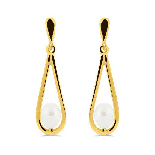 These drop earrings are crafted in 10-karat yellow gold and are set with a single freshwater pearl. These earrings are a lovely choice to suit all occasions.