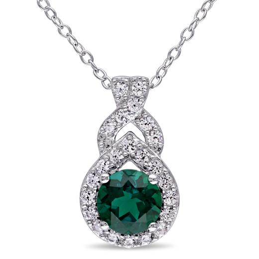 This pretty necklace features a round-cut created emerald and created white sapphires set in sterling silver. This extraordinary pendant is hung on a rope chain and is secured with a spring ring clasp.