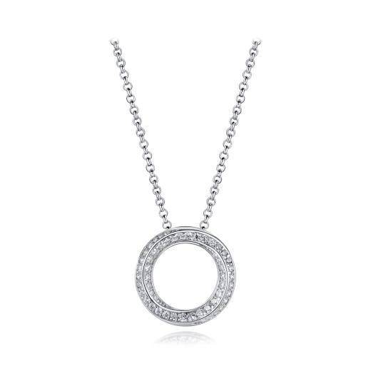 This round twisted cubic zirconia pendant is crafted in lustrous sterling silver and hangs on a beautiful 19 inch chain. This necklace is sure to make a standout addition to any jewellery collection. Choose this shimmering piece for yourself or as a special gift for someone you love.