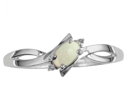 This modern twisted 10k white gold ring is sure to become a favourite item in your jewellery collection. This item is perfectly adorned with a genuine opal, which is the birthstone for October, and accented by diamonds. It you are looking for something stunning, order this for yourself or someone you love today!