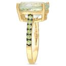 This bold and contemporary green quartz and peridot cocktail ring is crafted in lustrous yellow plated sterling silver with black rhodium and features an oval-cut green quartz as its centerpiece with 12 round-cut peridot stones studding the top portion of its slender band. Add a touch of color, elegance and sophistication to any ensemble with this breathtaking gemstone ring.