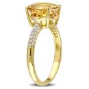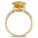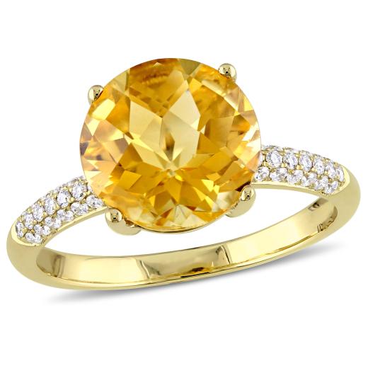 This elegant ring is crafted in 14-karat yellow gold and features a round and checkered citrine at its center with rows of diamonds along the shank. This stunning engagement ring is sure to make a standout addition to any jewelry collection.