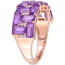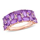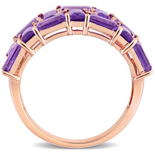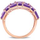 This exclusive mosaic anniversary ring is crafted in lustrous 10-karat rose gold. This modern double-row wedding band features 14 baguette-cut, prong-set African-amethyst gemstones adorned with 16 round-cut white diamonds beautifully embellished on this semi-eternity ring. Dazzle everyone with this radiant wedding band which will make you look splendid. Enhanced with a high polish finish, this bold gemstone and diamond ring is a valuable addition to any jewellery collection. Give yourself a glamorous look with this trendsetting wedding ring.