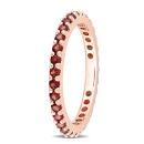 This splendid stackable eternity ring from the Collection is crafted in 10-karat rose gold. This pretty stacking wedding band features 28-32 round-cut garnet gemstones. Enhanced with a high polish finish, this gorgeous anniversary style ring is a valuable addition to any jewelry collection. Pair this brilliant eternity band with your favorite casual, professional, or dressy outfit and look gorgeous.