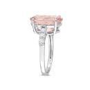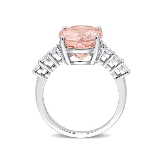 Style your pretty fingers with this striking oval shape morganite and diamond cocktail ring. This eye-catching ring is crafted in gleaming white gold and features one oval-cut, morganite gemstone surrounded by three round-cut, prong-set diamonds on each side of the gem. Polished to a brilliant shine, this flawless ring will give you an admirable look for any get-together or a party look.
