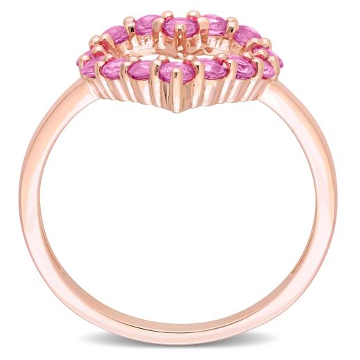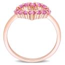 This charming heart ring is crafted in lustrous 10k rose gold. This exquisite ring features 14 round-cut, prong-set pink sapphire gemstones placed on the border of the open heart motif. Polished to a brilliant shine, this enchanting ring is perfect for any social gathering. A classic addition to every jewelry collection and an invaluable possession for every woman.