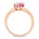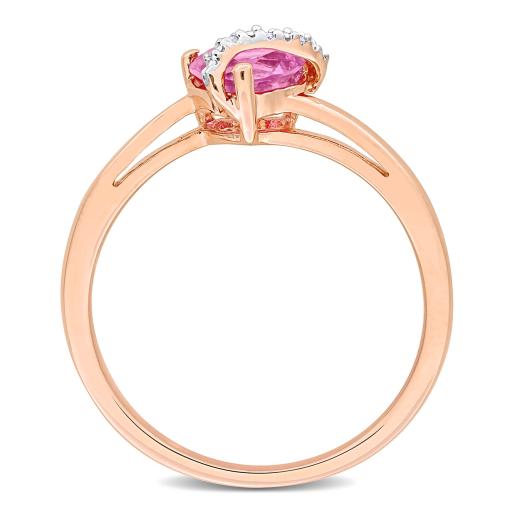 Introducing our enchanting and romantic 1ct TGW Heart Shape Created Pink Sapphire and Diamond Accent Ring in Rose Plated Sterling Silver ? a symbol of love and elegance. This ring features a captivating heart-shaped center adorned with a vibrant created pink sapphire, totaling 1 carat. Delicate diamond accents add a touch of sparkle, enhancing the overall allure of the piece. The ring is crafted in lustrous rose-plated sterling silver. The combination of the rich pink hue and the brilliance of diamonds makes this ring a perfect symbol of enduring love and timeless elegance.