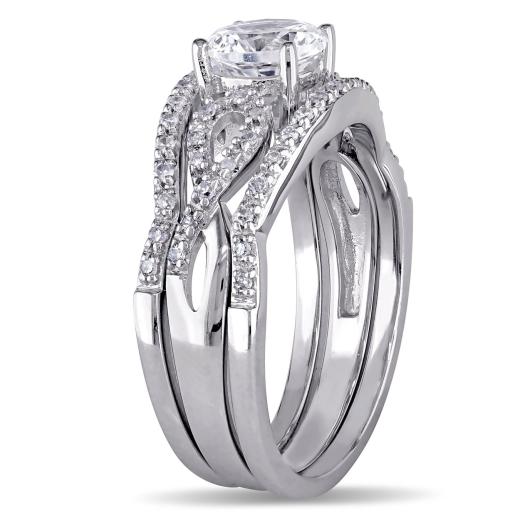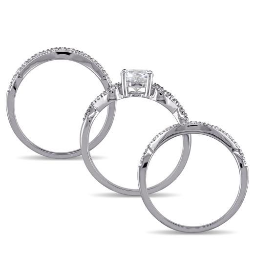 Celebrate your eternal love with this exquisite 1/4 CT TW Diamond and Created White Sapphire 3-Piece Infinity Bridal Set. Crafted in 10k white gold, the set features intricate infinity designs adorned with sparkling diamonds and created white sapphires. This elegant trio, perfect for the bride-to-be, combines timeless beauty with a modern twist, symbolizing a love that lasts forever.